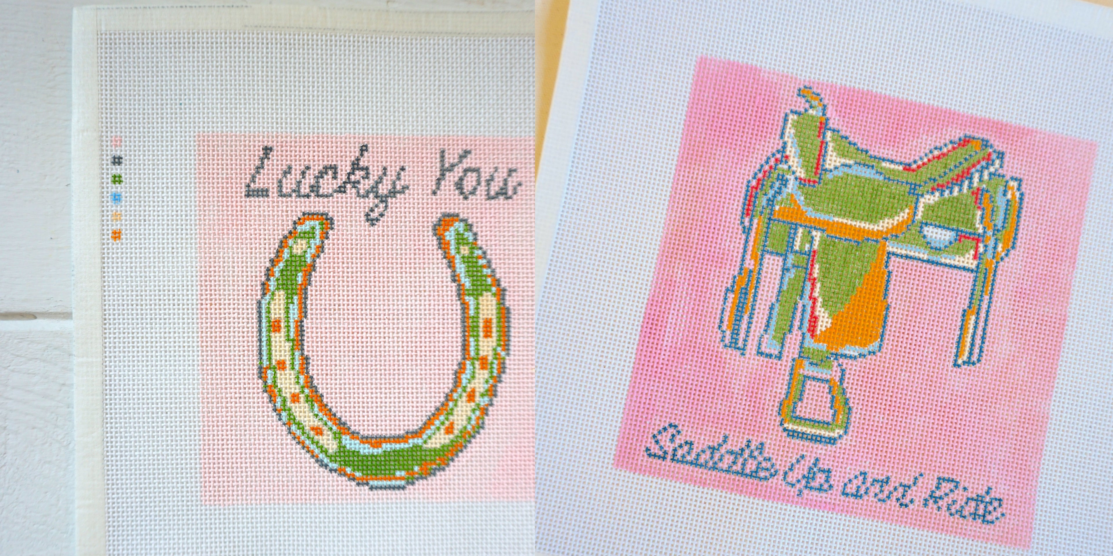 Thoughtfully hand painted needlepoint canvasses, with bright and colorful designs